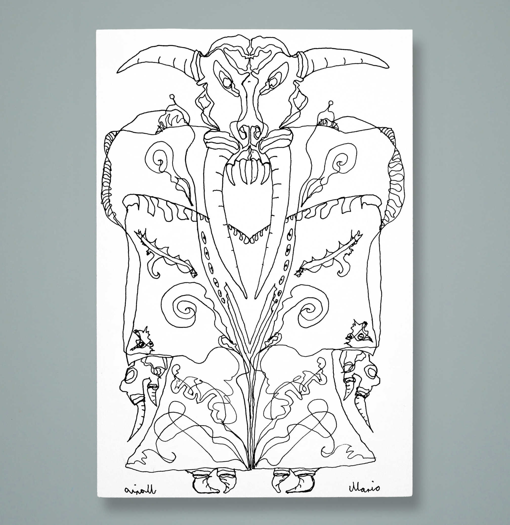 Once that first frog was finished, the process became an exploration. I learned the pattern by heart, then began shaping it into new variations, each maintaining the original flow while taking on a distinct form. All the frogs in this series were drawn using this continuous line method, their shapes emerging from the same unbroken movement.