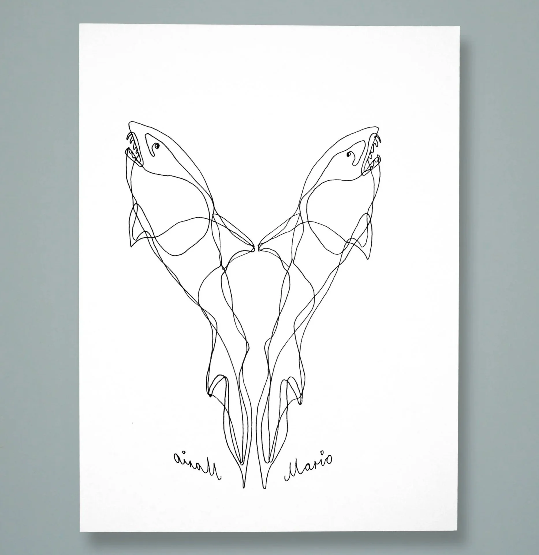 Created in London between 2018 and 2020, the We Come from Fish collection began in the early days of the pandemic. The idea came from a simple thought - that all life, including our own began in water. We were, in some distant form, fish. That sense of shared origin became the foundation for a series of drawings where fish and human faces merge into one another.
